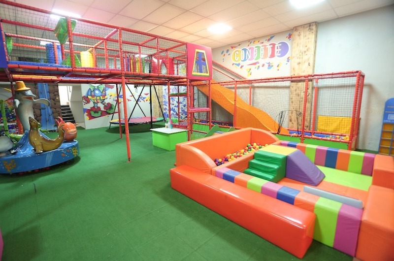 Brinquedos projetados para total divertimento, com espaço, para brincar e correr livremente. Sapatilhas para brincarem confortavelmente, sem escorregar, sem sujar as meias. Uma discoteca em que possam curtir, com total visibilidade para os pais.